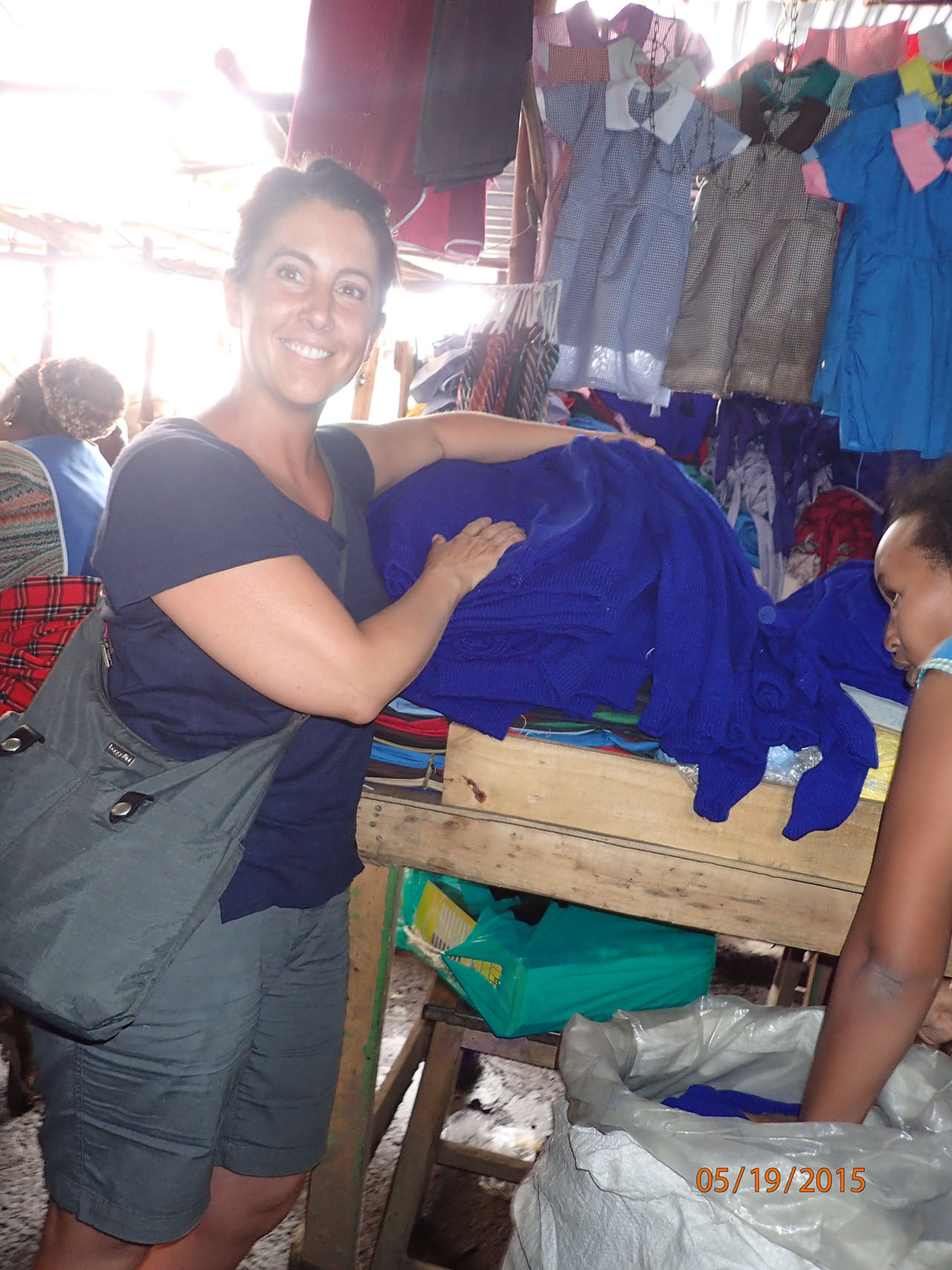Picking up uniforms at a market in Nairobi